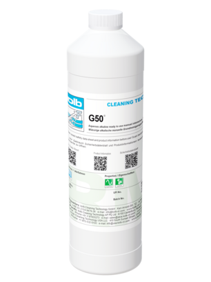 G50® è un detergente intensivo a base acquosa, pronto all’uso, sviluppato per la pulizia manuale di telai di saldatura, supporti di processo (carrier), filtri e altri componenti dei sistemi di saldatura.
